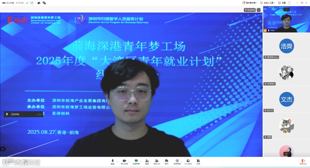 8月27日,前海产发集团联合深圳前海梦工场、深圳亚谛科技有限公司,在前海深港青年梦工场北区D栋4楼直播间成功举办“2025年度大湾区青年就业计划线上推介会第三场”。本次活动精准对接香港特区政府政策导向,吸引超50名香港青年在线参与,促成企业端简历投递量达岗位供给量的187%。