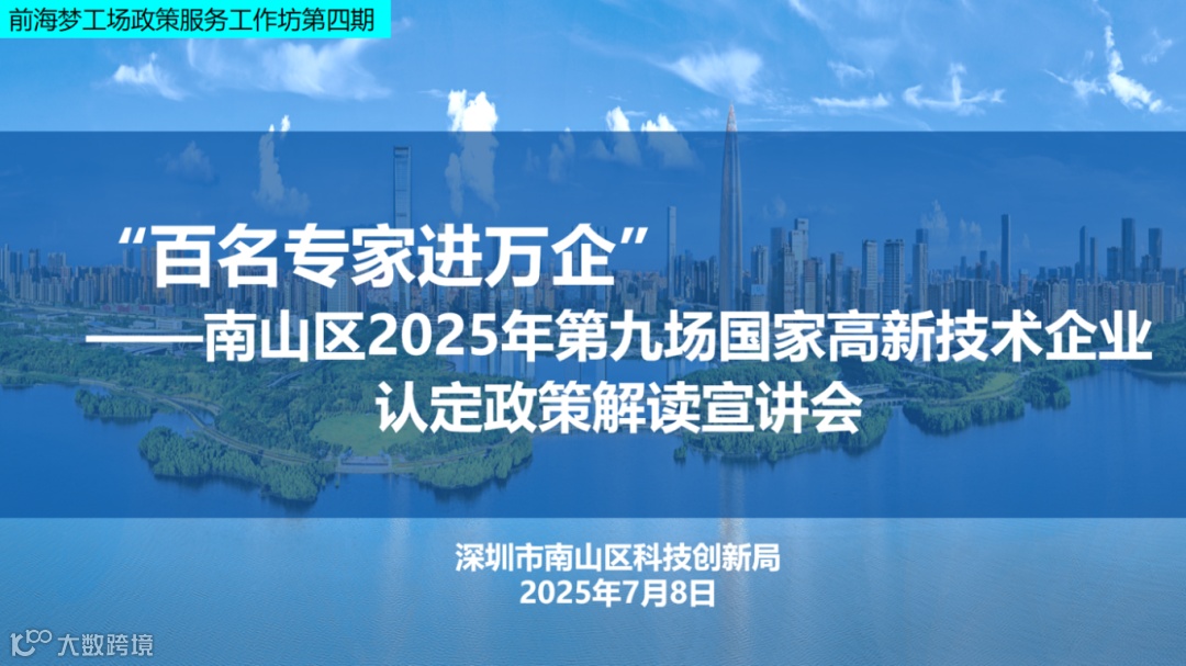 为了更好地让企业了解国家高新技术企业的相关政策、申报条件的变化,为本年度的国高申报做准备,现举办“南山区2025年第九场高新技术企业认定政策解读宣讲会”,本次宣讲会将邀请行业内权威专家为企业解读国家高新技术企业认定相关政策。