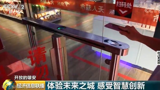 在无人超市,不需要主动扫码结账,因为每件货物上的二维码在出口处自动被感应扫描,货款自动从微信中划走。