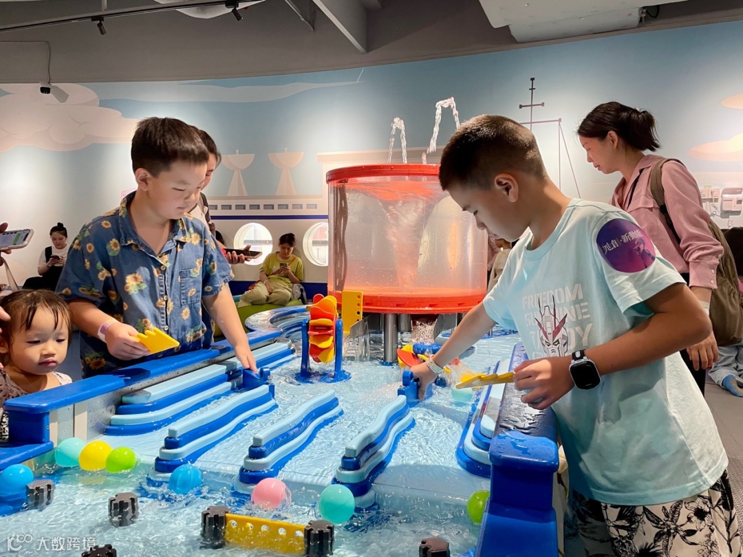 活动下半程,则是亲子共同探索儿童探索馆。小朋友们在六大展区中自由探索,不亦乐乎。在“探索自我”展区,孩子们通过人体模型与动态光影装置,直观了解心脏跳动、肺部呼吸等生理过程;在“探索深圳”展区,航海模拟器让亲子家庭化身“船长”,共同操控虚拟货轮穿越风浪,学习导航与团队协作;在“探索世界”展区,孩子们用磁力片拼搭立体模型,探索三角形稳定性与空间结构的奥秘。