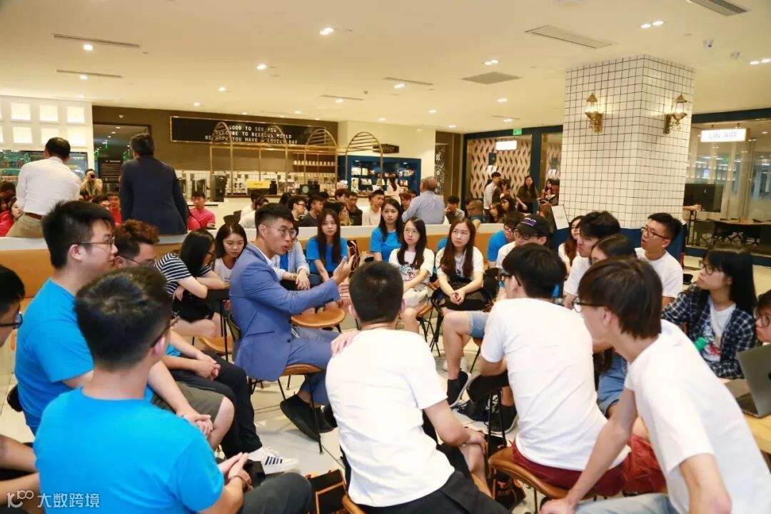 在开放式办公场景中,与创业前辈交流