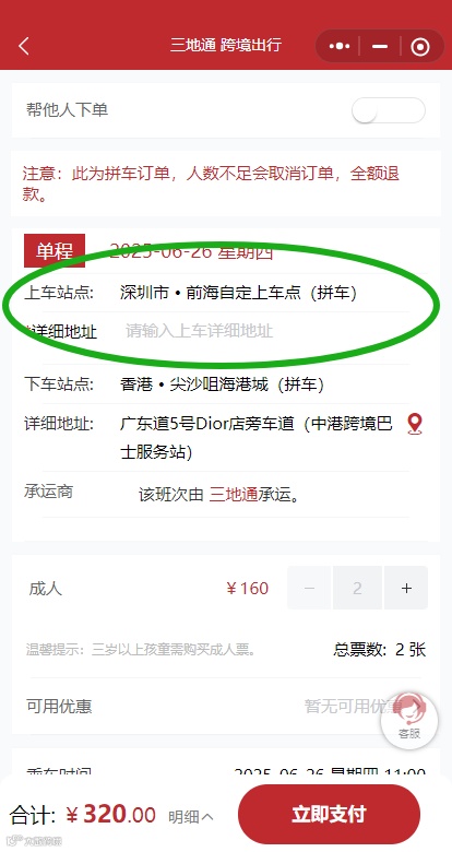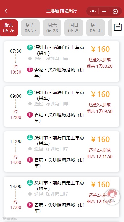 2人起拼,单程低至160元/人直达香港!