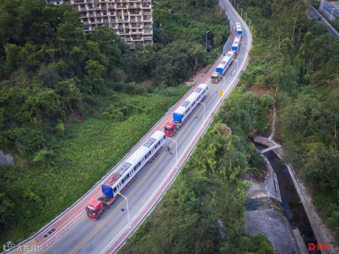 列车“乘坐”平板卡车从中车株机厂起运,经过近1000公里的铁公路运输,最后抵达深圳深云车辆段。由于车身庞大,地铁“回家”一般选择在车辆最少的凌晨时段进行,全程约花费24小时左右。首列车到达深云车辆段后,将进行组装、调试,与各种设备进行磨合。