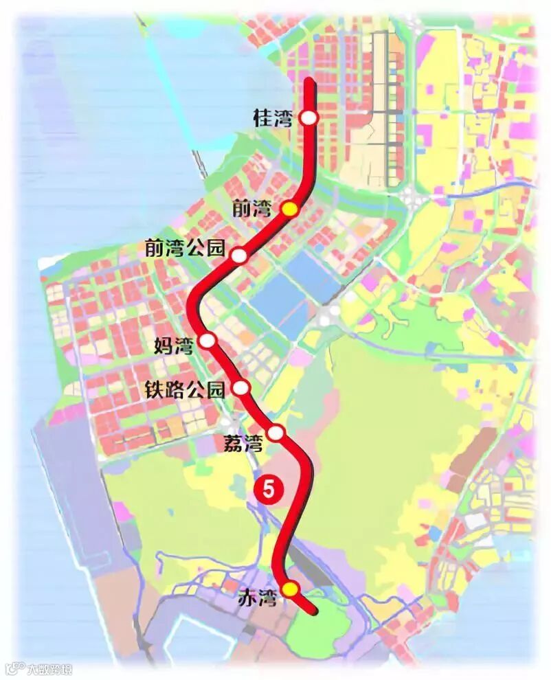 该线从已投入运营的地铁5号线终点站前海湾站向南延伸,至2号线赤湾站为止,共7站6区间,线路全长约7.65公里,站点分别为: