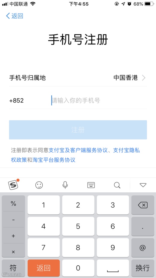 STEP1:通过应用商店或App Store下载“支付宝”,进入后点击注册,填入相关信息;