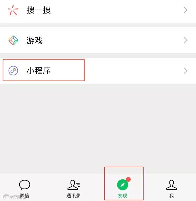 STEP1:进入微信,点击“发现”-“小程序”;