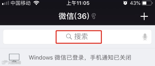 STEP1:打开手机微信,点击“微信”功能顶部的搜索框,点击搜索框进入搜索界面。