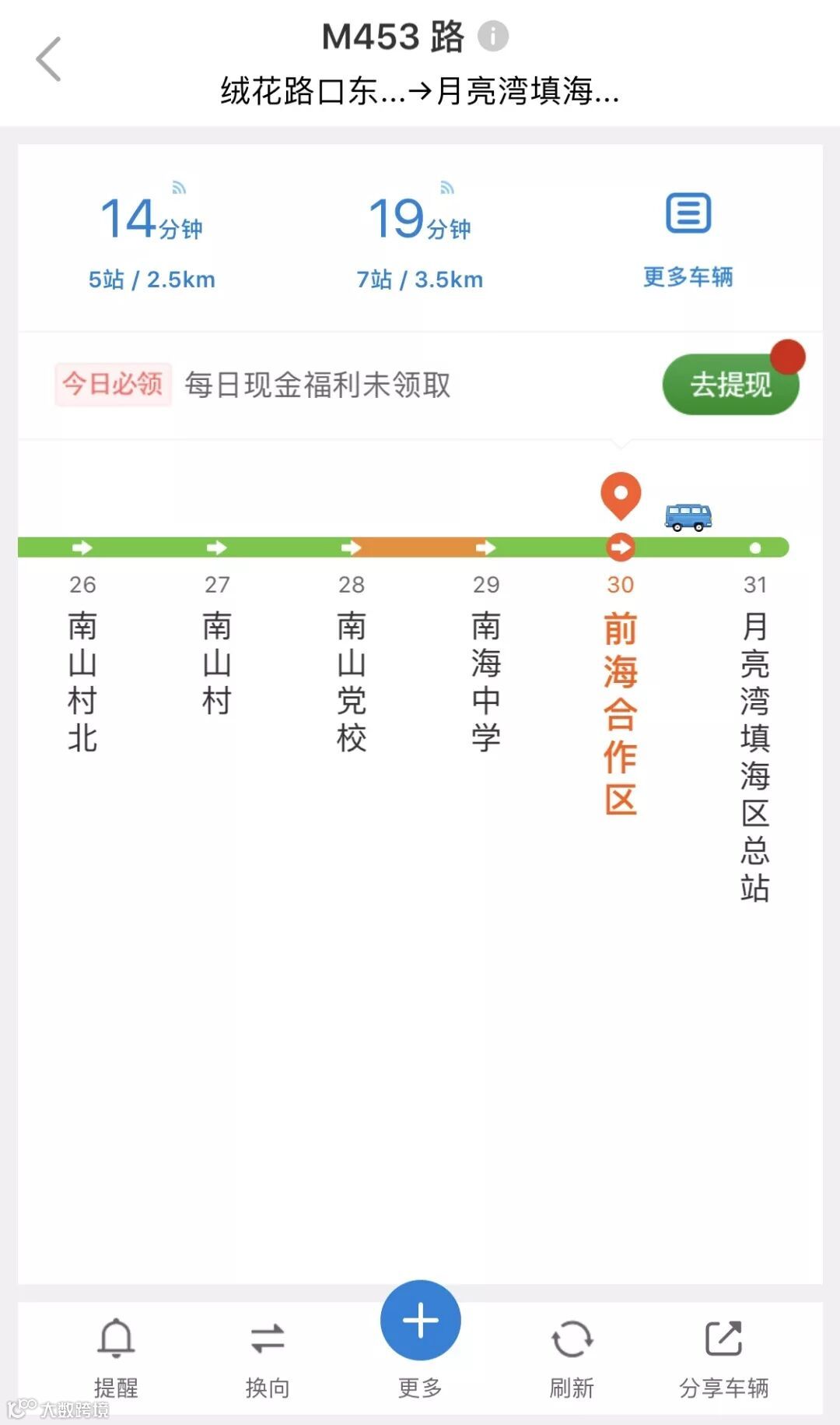 实时公交APP—车来了,用户通过APP可获得相关线路的精准实时信息,包括车辆在途的公交实时路况,以及到站信息,如到站时间、到站距离等。