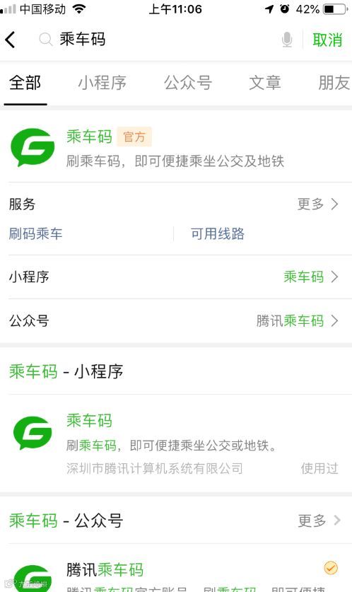 STEP3:进入搜索结果页面后,找到“乘车码”相关的“小程序”。