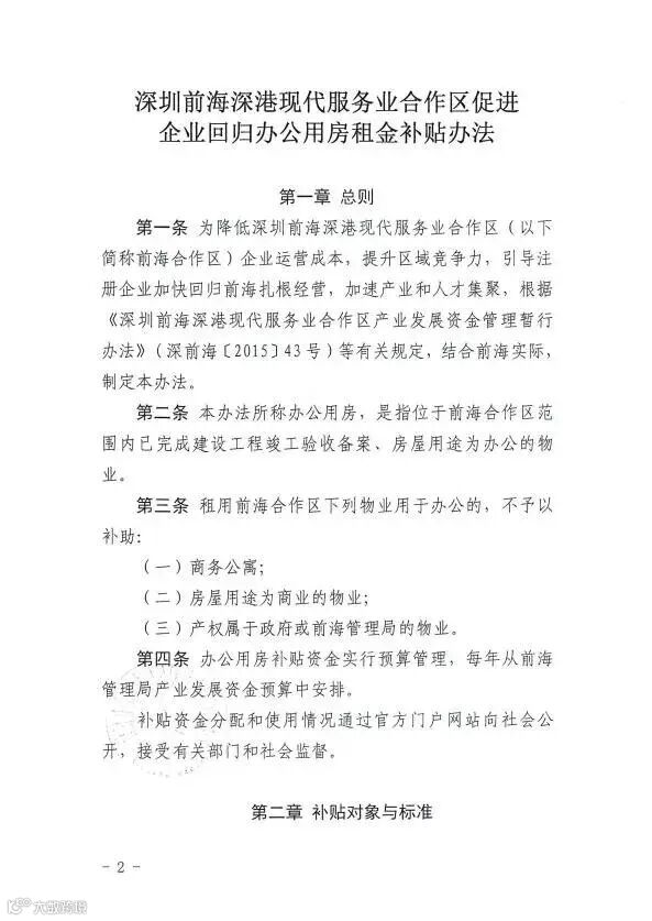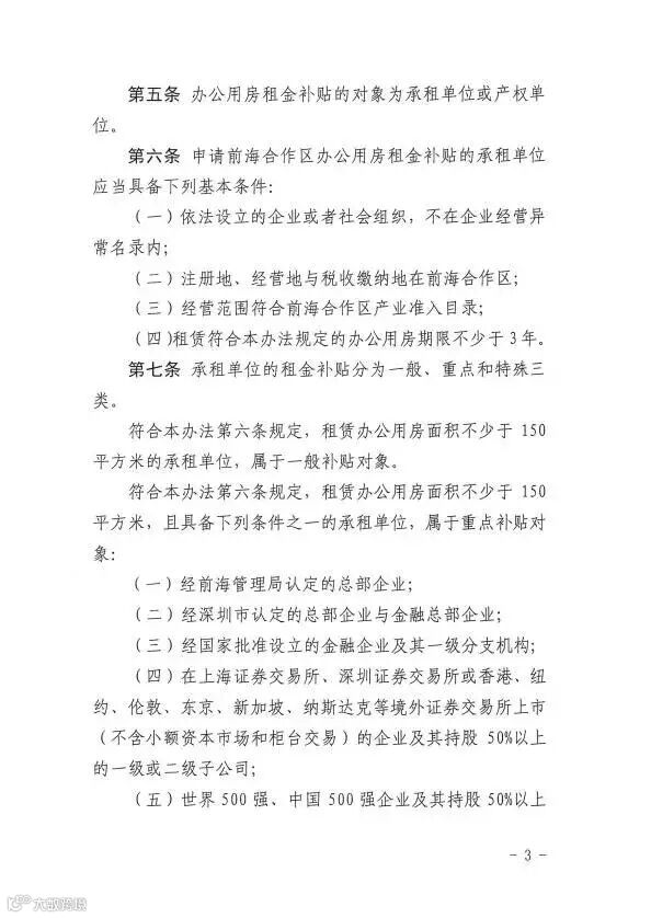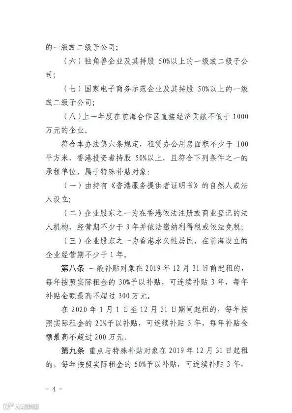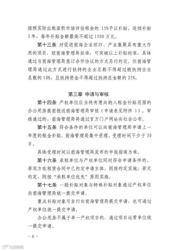 特殊补贴对象:将港企作为特殊补贴对象,适当降低准入条件(面积要求降至100㎡),享受与重点对象一样待遇。