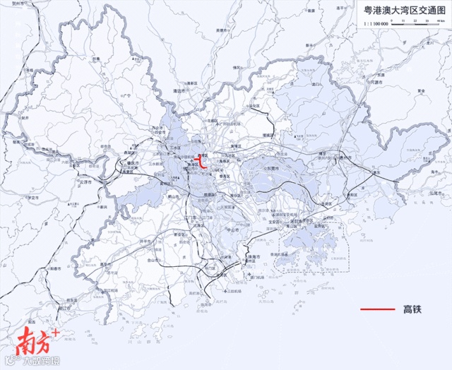 《粤港澳大湾区发展规划纲要》提出要构建极点带动、轴带支撑网络化空间格局。极点分别是香港-深圳、广州—佛山、澳门—珠海。而轴带支撑则要求,依托以高速铁路、城际铁路和高等级公路为主体的快速交通网络与港口群和机场群,构建区域经济发展轴带,形成主要城市间的高速连接。
