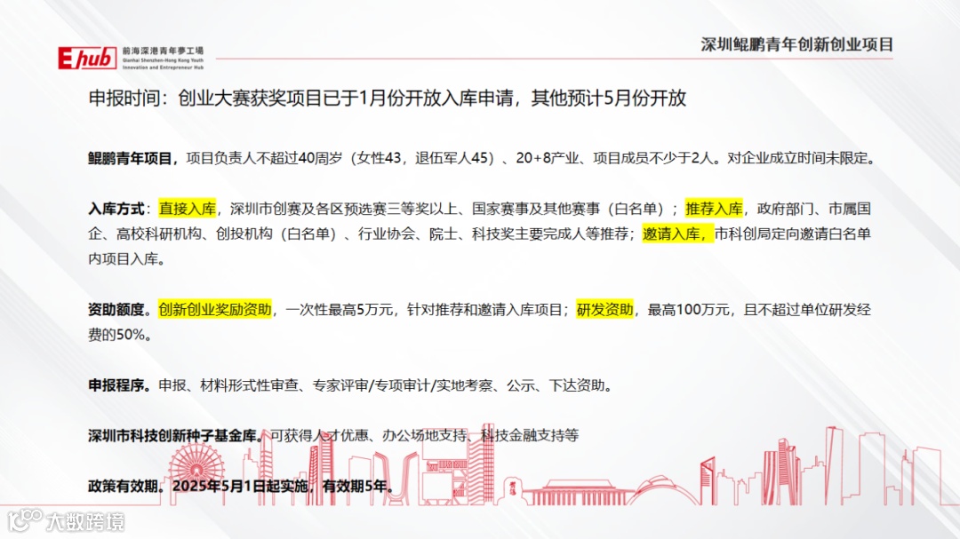 为做好梦工场园区企业留学人员创业补贴,以及深圳青年鲲鹏项目、深圳市小微企业技术创新项目、南山区青年领航创业团队资助项目等项目申报,2025年4月23日下午,前海产发集团及前海梦工场运营公司联合斑马星球科创平台、香港青年协会前海香港青年发展中心、半山舍All Day Club在前海梦工场二期成功举办了前海梦工场政策服务工作坊第1期——创业资助项目申报规划辅导活动,品图视觉、幻影未来、智掂科技、塔洛斯智能、茵塞普科技、智法数科、数能觉醒等19家企业参加了本次活动,活动得到深圳市归国留学人员服务计划支持。