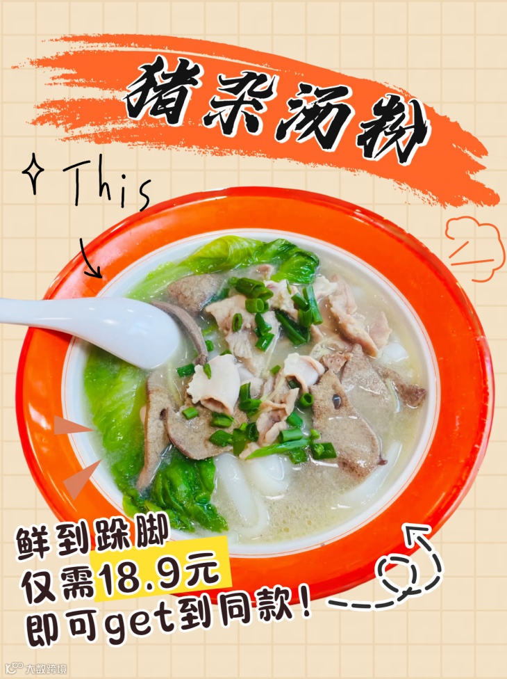 嗦粉爱好者看过来!猪杂汤粉鲜掉眉毛,18.9元一大碗,鲜嫩猪杂配上爽滑米粉,汤汁浓郁超治愈;牛腩粉更是一绝,24元就能get大块软烂入味的牛腩,裹满汤汁的米粉吸溜一口,直接香迷糊!