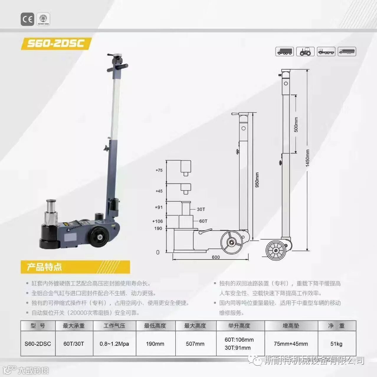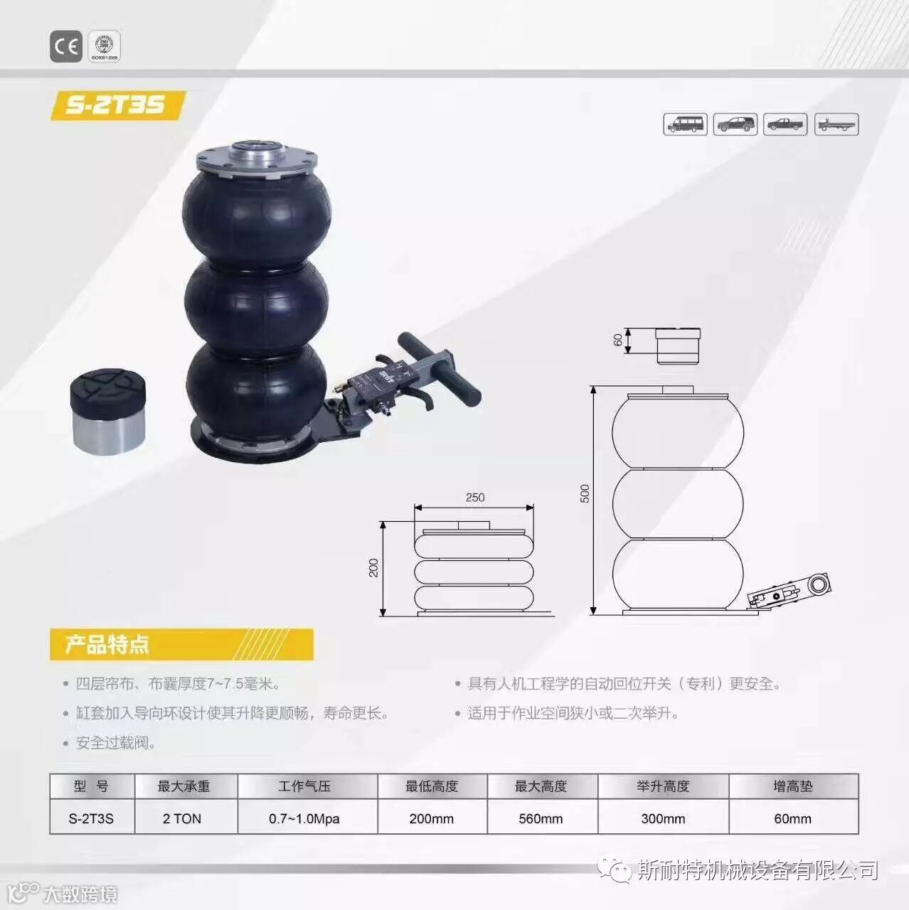 专业生产气动液压千斤顶、气囊千斤顶、卧式双泵千斤顶。