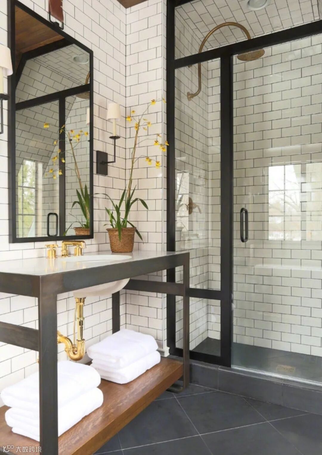 划重点:玻璃/墙体隔断+小淋浴房/挡水条+挡水帘/洗手台外移等方式,适合5㎡以下卫生间的干湿分离,好用而且颜值高。