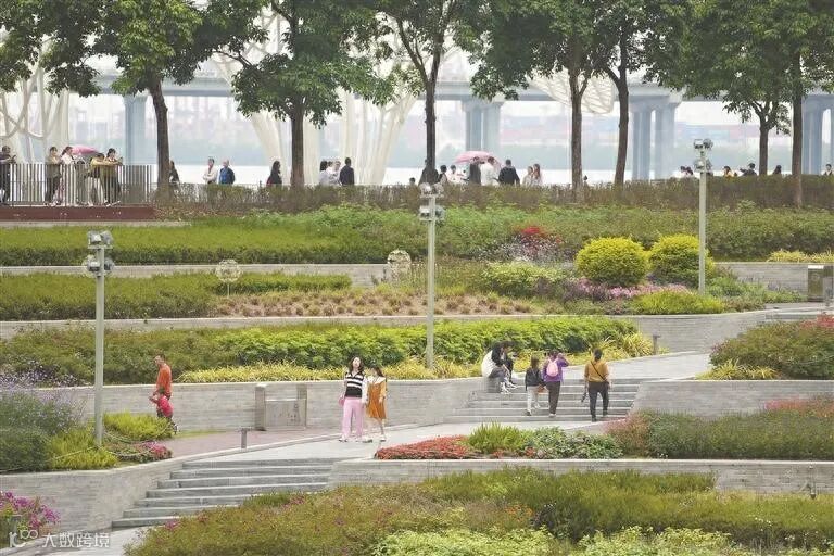 桂湾公园出发,这里成片的美人蕉开得正艳,粉色与黄色交错点缀,如调色盘般铺陈,不规则花海形成流动的曲线,如油画般蔓延。蝴蝶不时穿梭其中,蜿蜒的步道沿水岸延伸,市民漫步于花海,感受“城市森林”的清新。