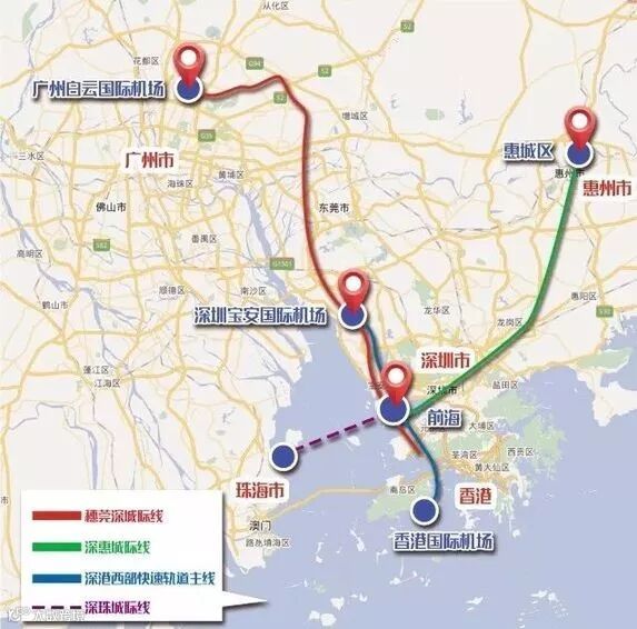 前海规划的4条城际轨道示意图 🔺