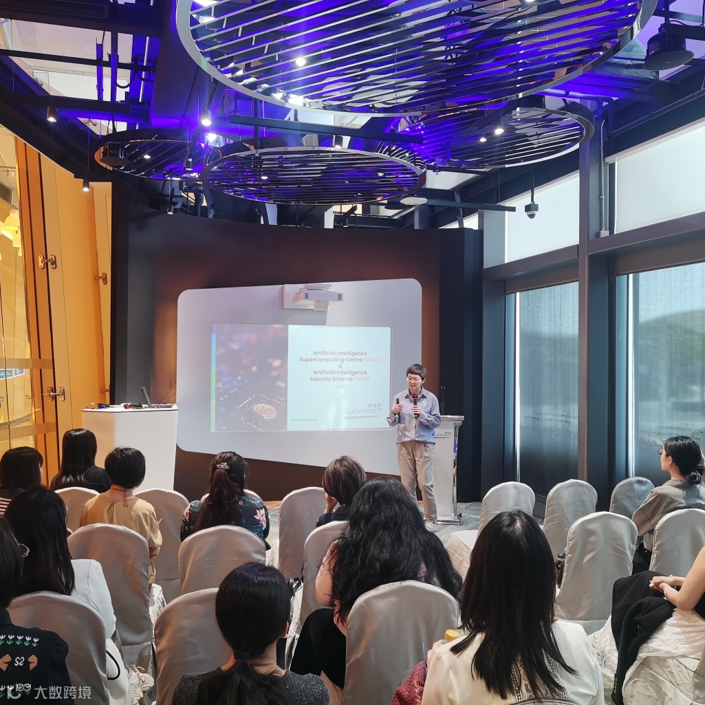 其次主题分享环节,数码港人工智能应用总监霍露明博士分享了香港在人工智能领域的发展应用情况以及数码港在人工智能服务领域的优势,香港女性创业企业(Big Bang Academy)代表唐倩怡 (Sarah)和深圳女性创业企业(智掂科技)代表周小霞分别分享了各自的创业历程和创业心得。