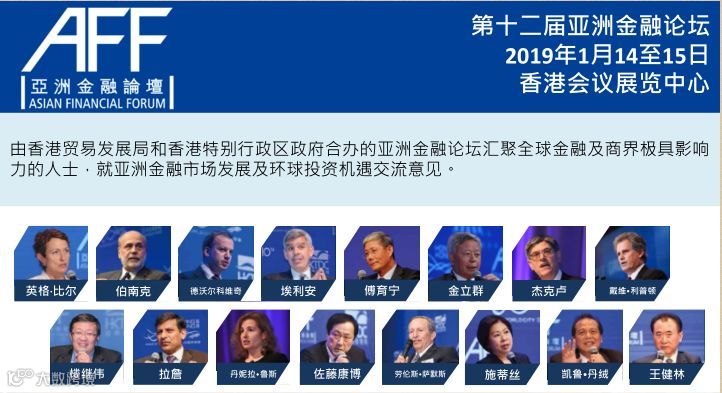第十二届亚洲金融论坛(AFF)将于二零一九年一月十四至十五日在香港会议展览中心举行,论坛汇聚全球金融及商界翘楚,是业内人士交流心得和分享资讯的上佳平台。