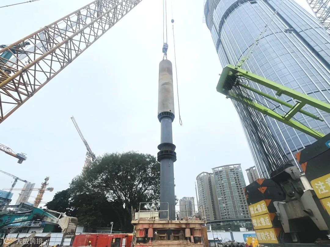 皇岗口岸站全长1104米,宽75.75米,基坑最深40.6米,框架逆作段区域内钢管柱共计98根,位于口岸片区内。