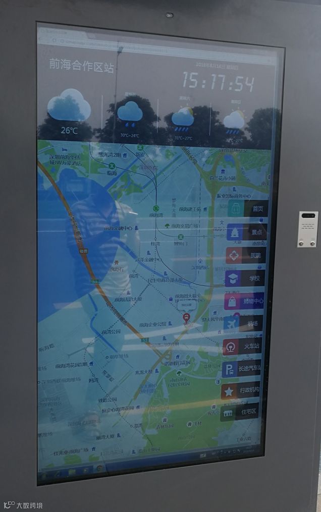 查询触摸屏提前预设了到机场、火车站、长途客运站等交通枢纽的查询按钮,以及前海周边学校、医院、热点商圈的查询按钮,也可以自主查询,后台的大数据平台都会告知乘客出行路线、需要乘坐的车辆线路、换乘地点、乘车时间等关键信息,让乘客感受到一屏在眼前,行程尽在掌握的良好出行体验。通过扫描屏幕右下角的二维码,乘客查询的出行信息可以即刻在手机屏上展示,上车后也不用担心忘记出行路线,随时查看乘车信息。