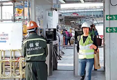 大公报记者昨午四时许到西九龙总站视察,该站入口设有工程闸,隔绝行人通道,记者不能进入。站外虽然未有保安看守,但职员进入时,要凭职员证入闸,承办商职员除了职员证,亦要将右手放在读取器上辨认指纹,方可入站。