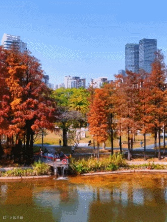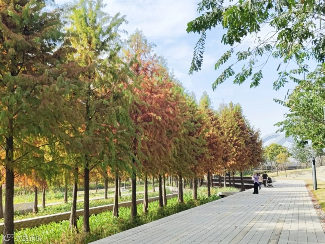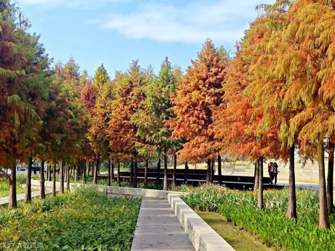 进入1月以来,四海公园内的落羽杉林黄、橙、红、棕各色相荣,渐入最佳观赏期,一半湖水交织一半红杉,偶尔还有水鸟掠过水面,充满晚秋气息的四海公园也蕴藏着勃勃生机。