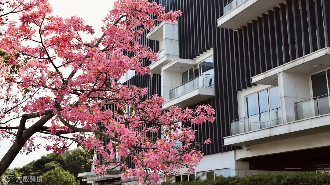 美丽异木棉的花期通常在每年的9月到次年的1月,是深圳最具代表性的花卉之一。淡紫红色的花朵,宛如天边温柔的云霞,又似一簇簇燃烧的火焰,在秋日的凉风中,为深圳带来丝丝暖意,把前海青年梦工场装点得如诗如画。