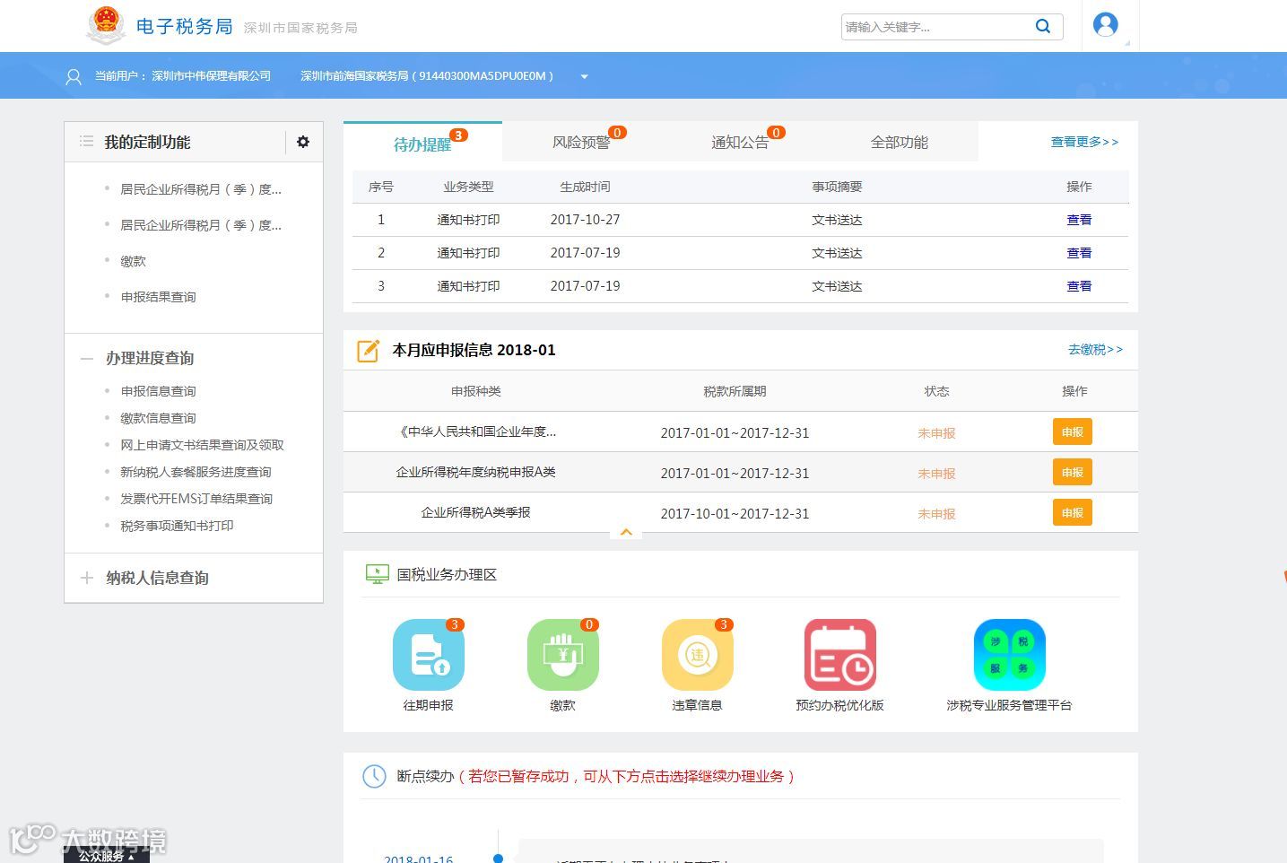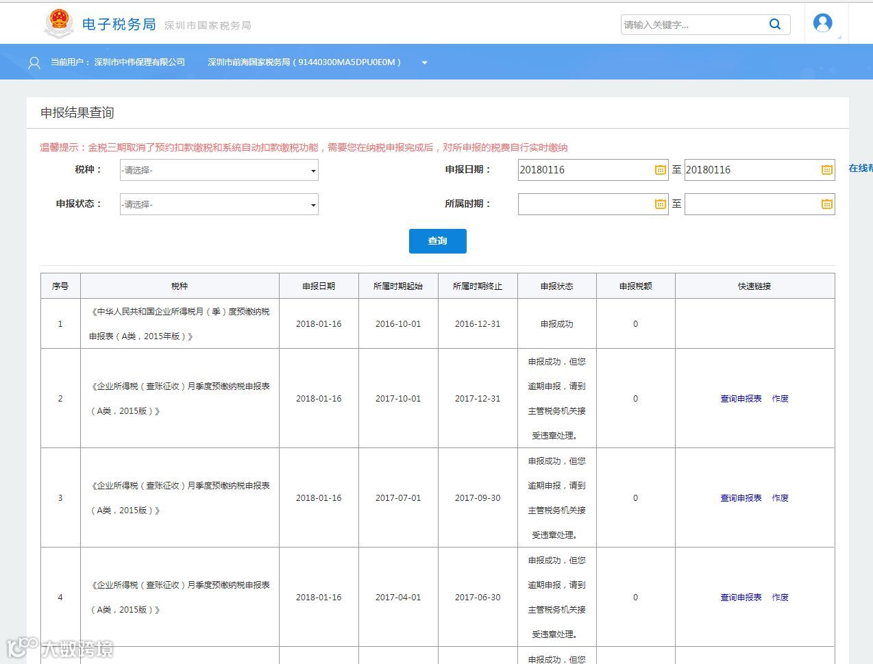 电子税务局显示逾期信息