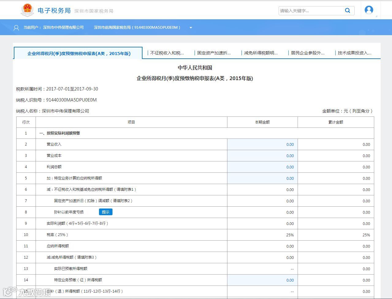 企业所得税-季报