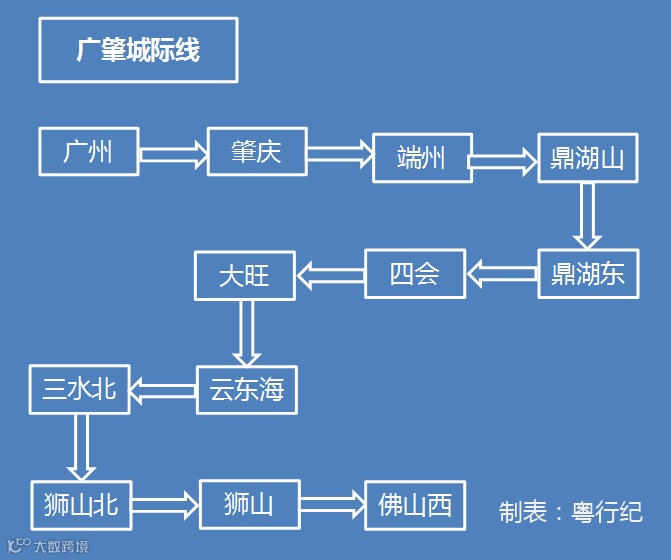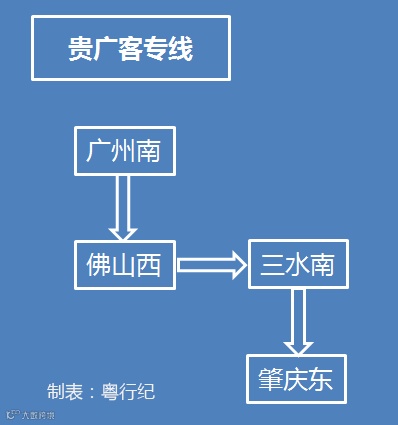 贵广客专线省内段途径肇庆、佛山、广州,从广州南站到佛山西站仅需19分钟,到肇庆东站35-42分钟不等。