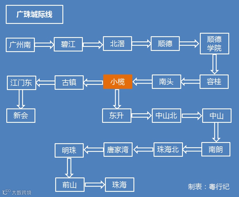 广珠城际线,经过佛山、中山、江门、珠海4个市,从广州到珠海1小时左右,从广州到江门就快一点,只需要50分钟。