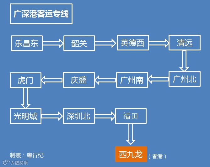 广深港客运专线是一条部分通车的在建高铁,待广州通往香港西九龙总站,以后从深圳福田到香港西九龙最多只需14分钟,目前参考的行程费用为53港币。