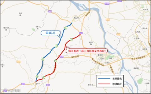 可从佛冈收费站分流至106国道,经106国道绕行至汤塘收费站进入高速。