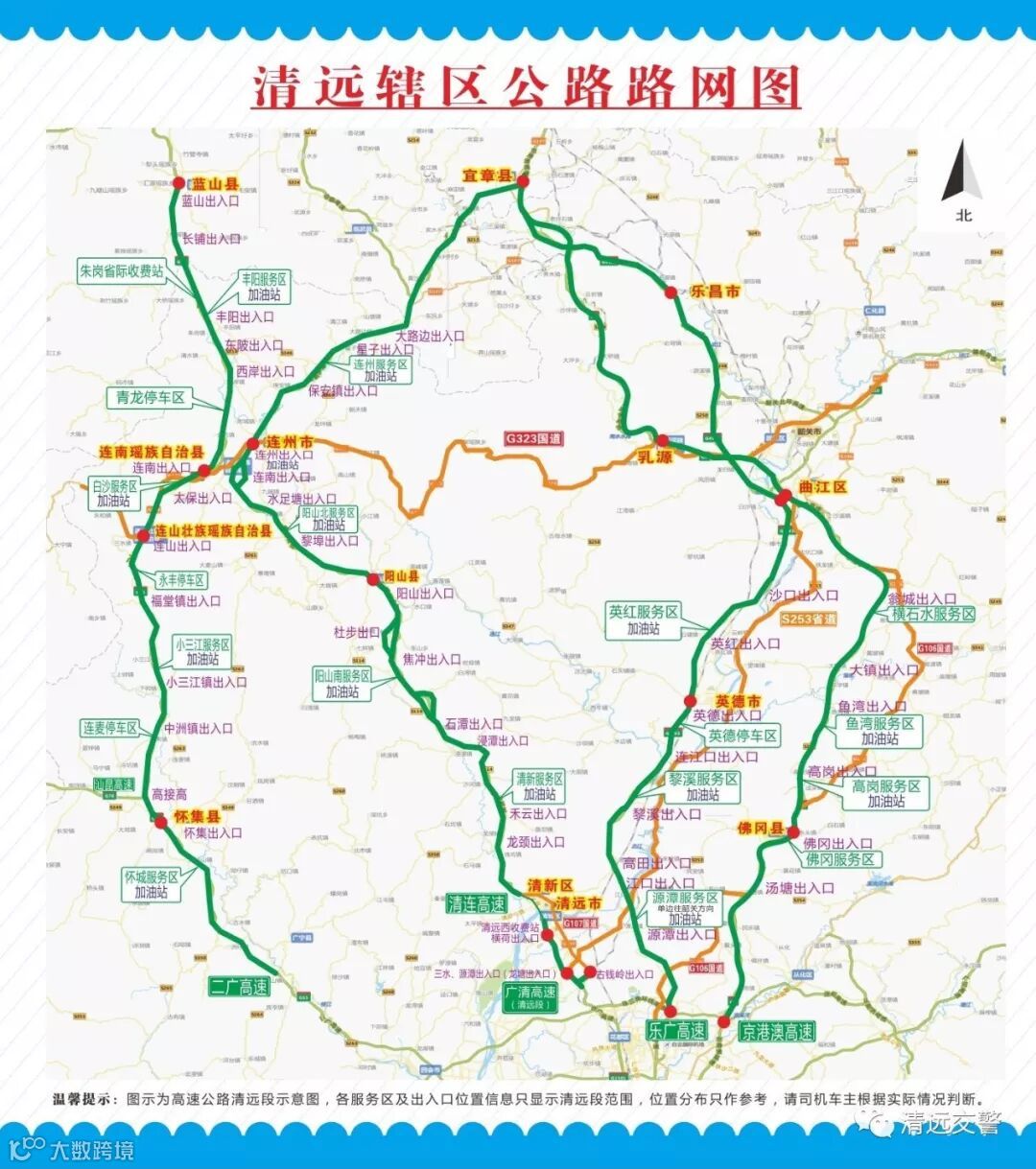 如清连高速清新段发生拥堵,可从就近高速公路出口(龙颈、禾云、浸潭、石潭)驶离清连高速公路,行驶S114线地方公路到清新区。