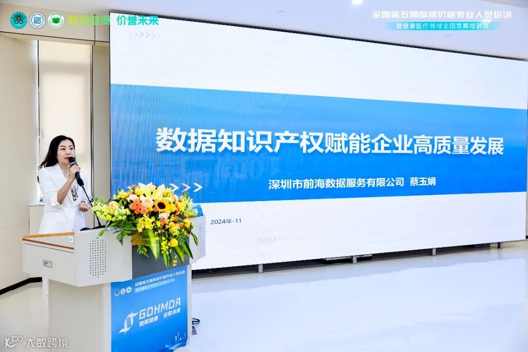 伴随数字经济的蓬勃发展,数据已成为推动经济社会发展的重要引擎。为了提升数据产业的专业化水平,适应数字经济的新趋势,中国价格协会数据价格专业委员会(简称“数价委”)于2024年11月9日至11日,在广东省人民医院医学模拟教育培训中心成功举办了第五期“数据价格专业人员(健康医疗领域)培训班”。 深圳市前海数据服务有限公司副总裁蔡玉娟作为数据专家受邀前往开展数据知识产权专题培训。
