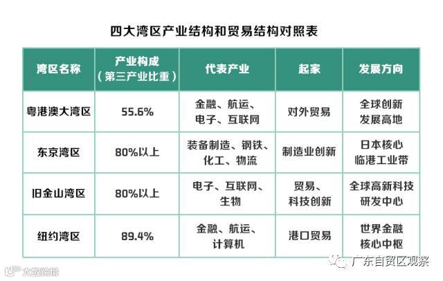 如今三大湾区已顺利进入服务经济和创新经济阶段,第三产业比重均超过80%,而粤港澳大湾区第三产业比重不到60%。