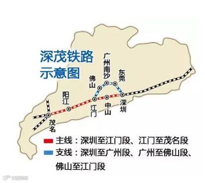 去年修建的深茂铁路联络线将引广州、佛山,在广州枢纽丹灶至佛山西联络线以及广珠线路改造工程完成后,可从佛山西出发,乘坐丹灶至佛山西联络线,经由江门站换乘深茂铁路前往深圳。