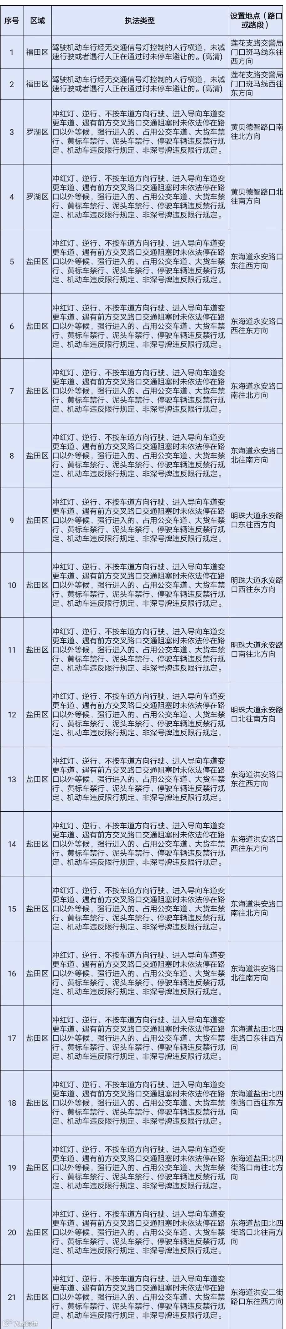 市交警局将公布启用88套高清电子警察设备,重点整治不礼让行人、冲红灯、逆行、不按车道行驶、机动车违反限行规定、非深号牌违反限行规定等多种违法行为。