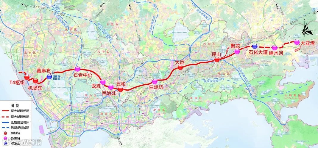 深大城际铁路工程线路平面示意图(以实际建成为准)