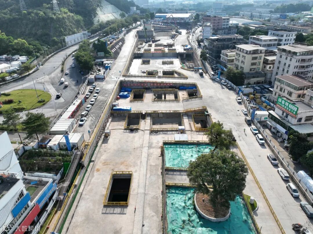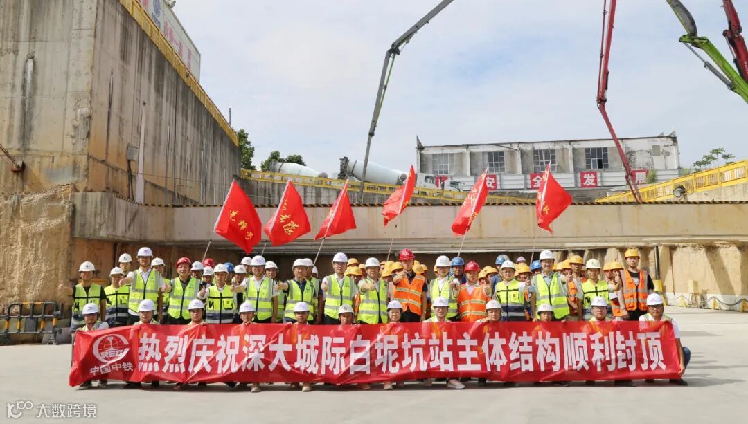 白坭坑站自第一幅地连墙施工以来,历时912天,共完成地连墙226幅、立柱桩201根、结构钢筋2.8万吨、结构砼13.5万立方、土石开挖65万立方;随着最后一方砼的落下,项目也将全面进入附属结构及站后施工新阶段。