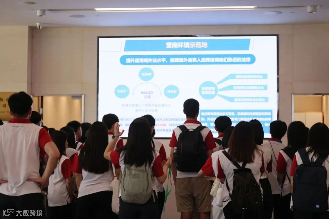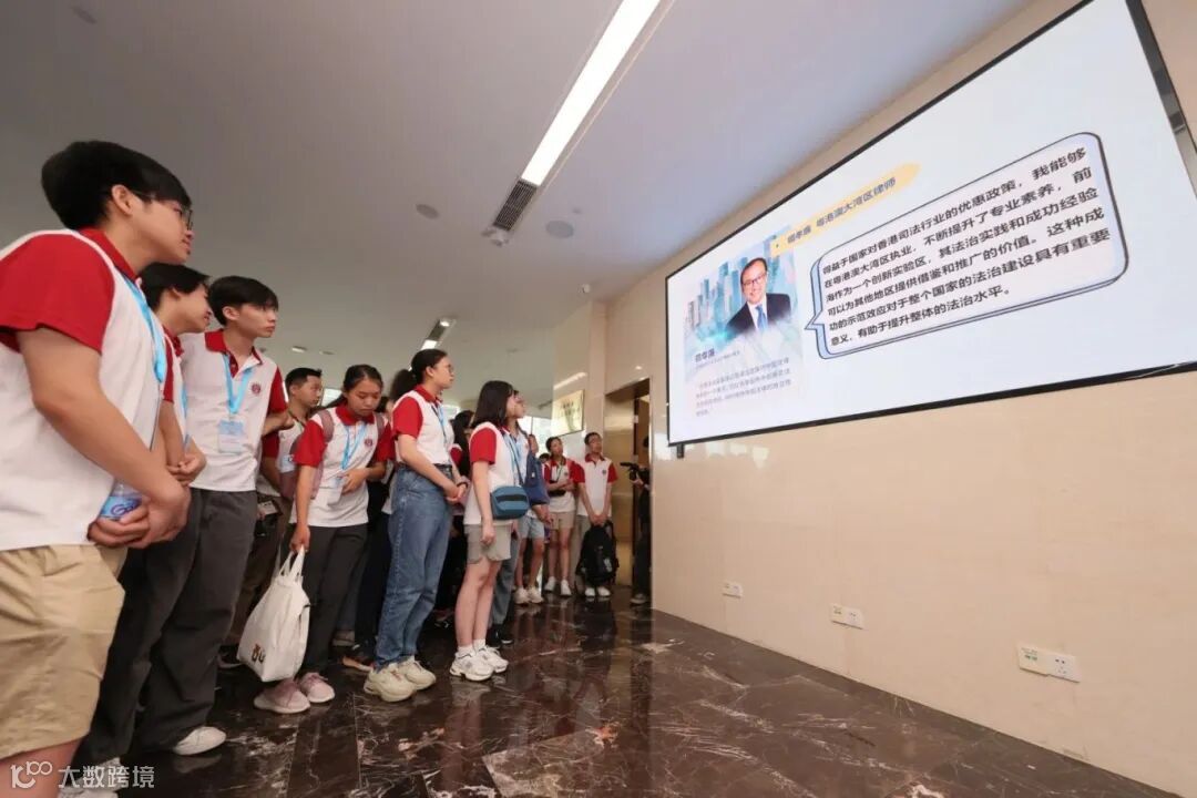 大湾区识法交流团走进前海法治大厦,近距离了解前海法院的工作情况。百名香港中学生参观了前海法院诉讼服务中心、ADR国际商事争议解决中心,了解了前海法院跨境商事审判、国际商事纠纷多元化解、智慧法院建设等工作及成效。