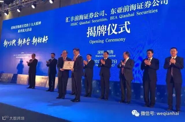 12月7日,在“新时代、新平台、新标杆”前海贯彻落实党的十九大精神系列重大活动上,汇丰前海证券有限责任公司(以下简称“汇丰前海证券”) 与东亚前海证券有限责任公司(以下简称“东亚前海证券”)隆重开业。