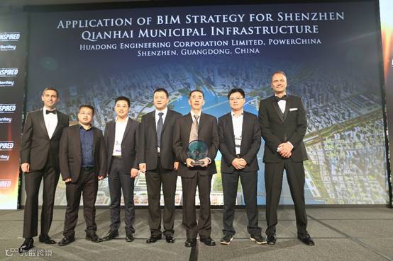决赛阶段,各参赛单位在业界同行、评委以及100多家媒体面前展示项目实施效果。前海项目以Better City, Better Life(城市让生活更美好)为主题,展示了深圳前海城市级的BIM应用成果。整个成果涵盖了如何依托BIM三维数字化技术优势,建立城市级地理、地质及规划信息模型,搭建BIM建设管理平台,开展一系列BIM设计施工一体化应用,解决城市级规划设计技术接口协调、施工建设质量安全进度管控等难题,阐述了城市智慧运营管理的理念。经过专家提问、交流答疑等考验,一致推荐前海市政基础设施BIM应用获得2017全球基础设施市政领域Be创新奖。