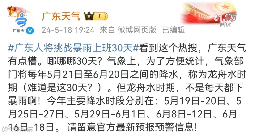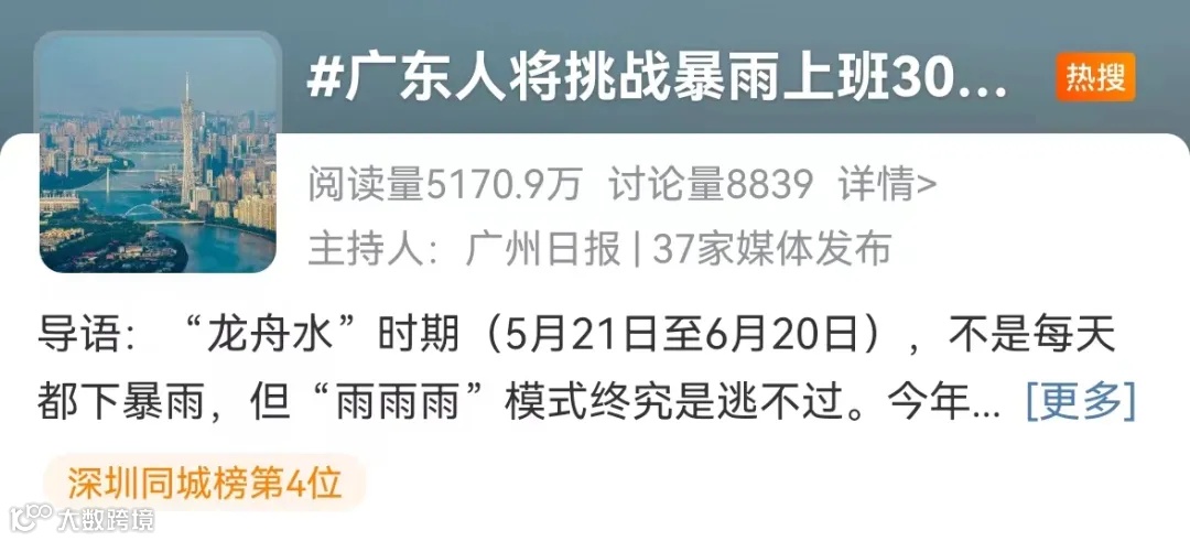 “广东人将挑战暴雨上班30天”