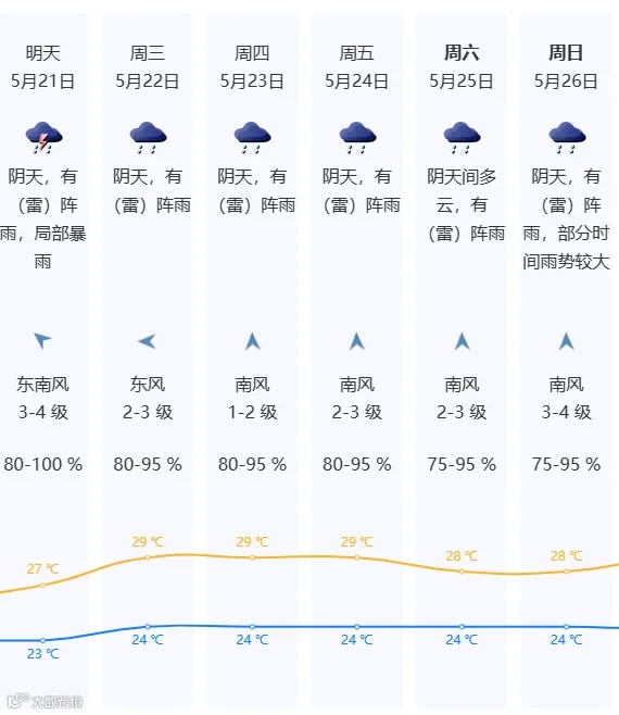 展望23-25日,仍有阵雨或雷阵雨。
