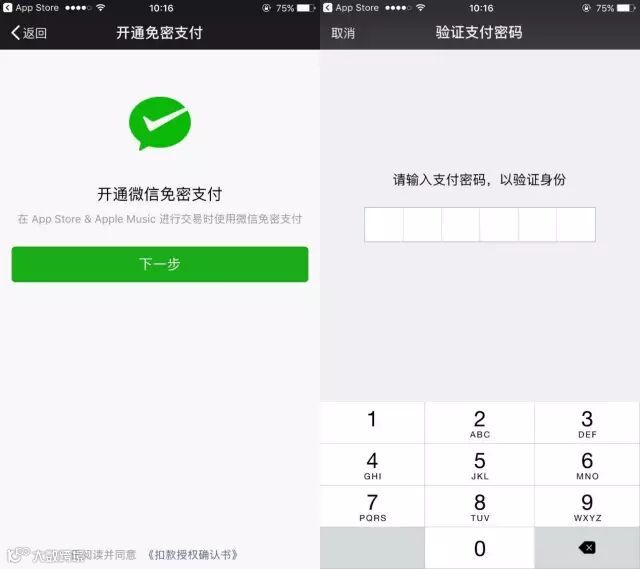 在已登录状态下的微信app中,输入支付密码,即可完成身份验证,开通免密支付。