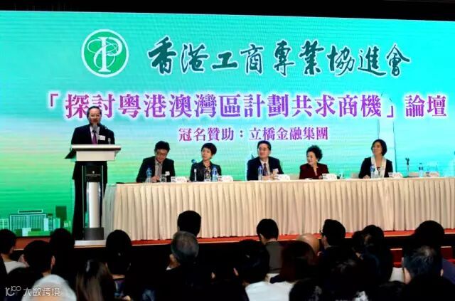 香港工商專業協進會昨舉辦「探討粵港澳大灣區計畫共求商機」論壇,邀得中聯辦社會工作部部長楊茂、中聯辦法律部部長王振民、商務及經濟發展局副局長陳百里擔任主禮嘉賓,深圳市前海深港現代服務業合作區管理局副局長王焱俠、港交所上市發行服務部高級副總裁鍾創新、澳門金融學會管理委員會顧問劉錦釗等任主講嘉賓。