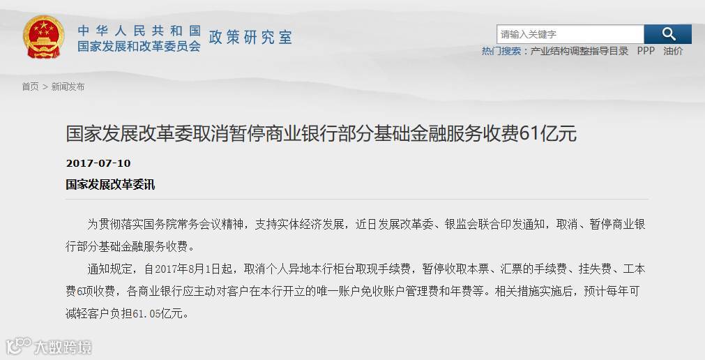 部分基础金融服务费取消