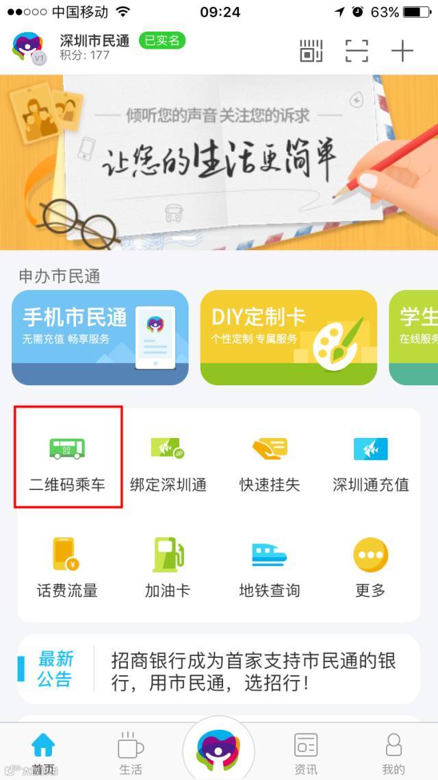 3.下载“深圳市民通”APP,开通二维码乘车即可!(“深圳市民通”APP还有其它实用功能哦,如:实名绑定深圳通卡,实现快速挂失,还有充值深圳通、线上办理学生卡/儿童卡、个性定制卡等等,快去下载吧!)